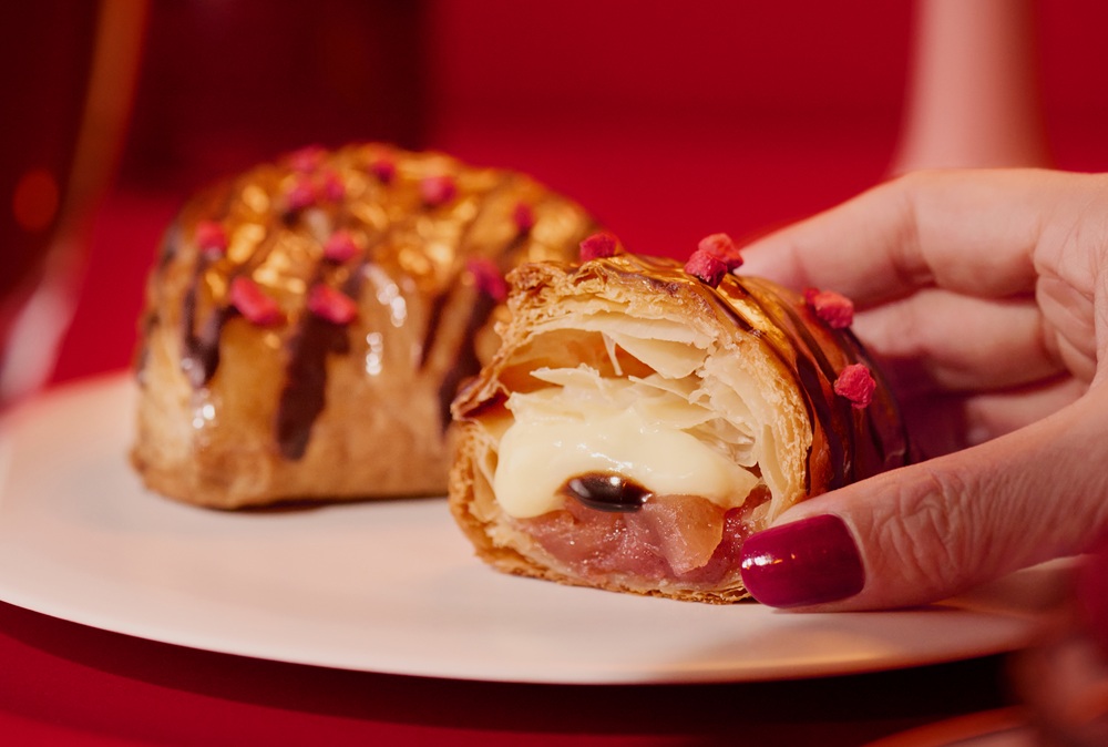 「焼きたてカスタードアップルパイ ダブルベリーショコラ」は、2026年2月1日(日)から発売開始。甘酸っぱいストロベリーとラズベリーの“ダブルベリー”にビターなチョコレートをあわせたアップルパイ。大人っぽく上品なバレンタイン気分を演出する仕上がりです。ひと口でふっとほどけるような、とろける甘さに癒されるご褒美アップルパイをお楽しみください。