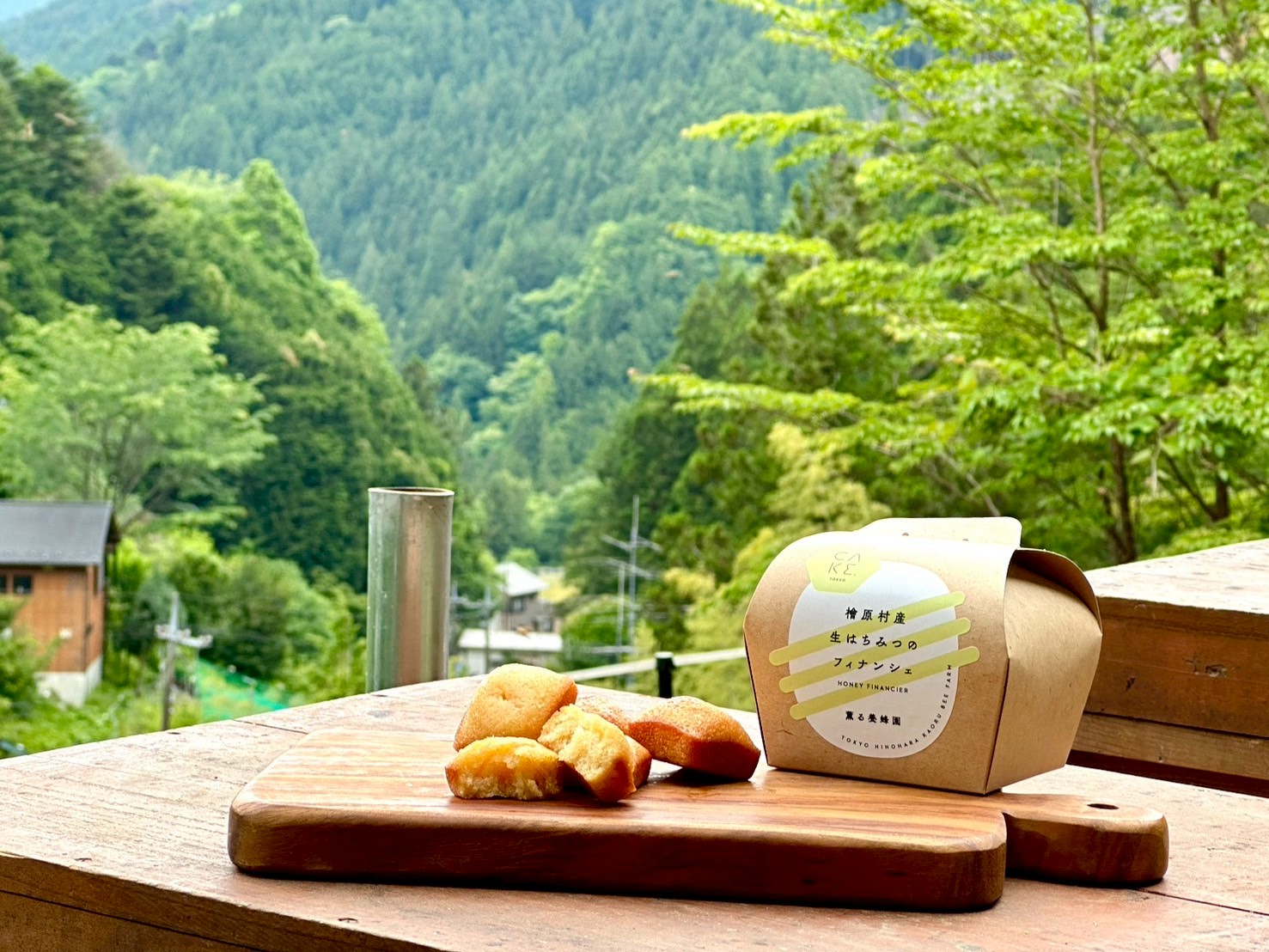 都心からわずか2時間足らずで来れる「檜原村」。東京都の西のはずれにある大自然につつまれた山里で採れた「生はちみつ」をひと口サイズのフィナンシェにそのまま閉じ込めました。